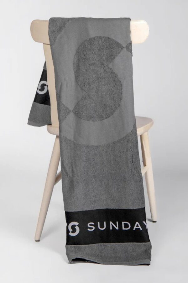 The Sunday bath towel is made out of 100% cotton, decorated with a combination of border and reliëf weaving